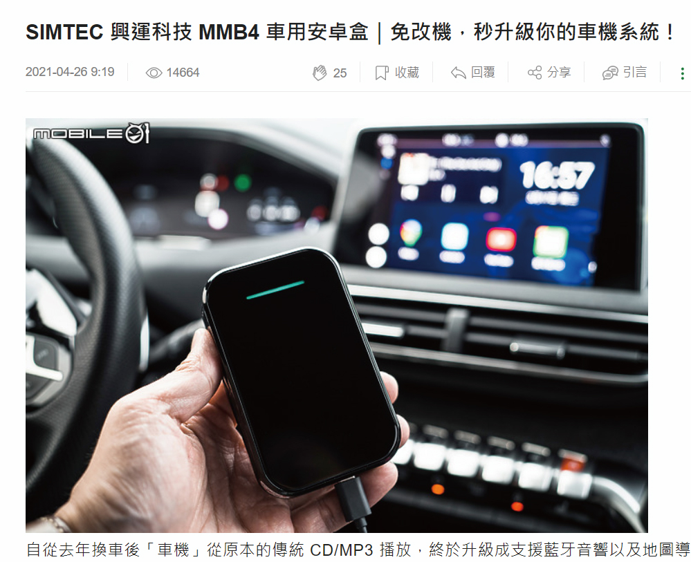 MOBILE01-SIMTEC 興運科技 MMB4 車用安卓盒|免改機,秒升級你的車機系統!