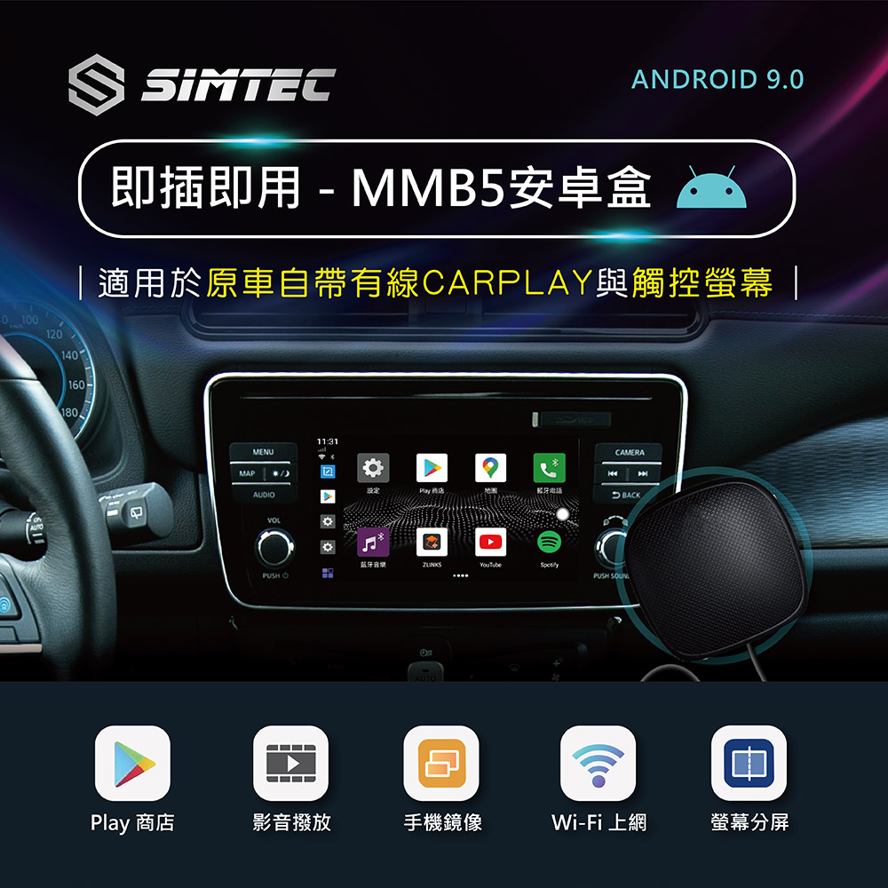 SIMTEC-MMB5/高通八核心4+64G安卓盒(適用於原車自帶有線CARPLAY)
