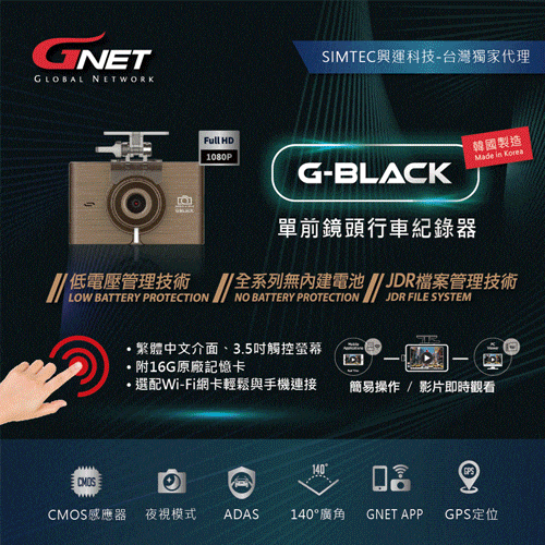 GNET的產品線均採用了優良的電子零件與高規格的連接器來確保在各種環境下均能夠提供穩定的品質。 GNET產品線擁有強大的核心競爭力,包含了獨家JDR記憶體管理系統、WIFI手機互聯APP、PC端專屬程式、ADAS、LBP低電壓管理系統,提供用戶優質、穩定與便利的使用體驗。 GNET韓國製高品質興車記錄器-官方網站(請點選此文字連結)