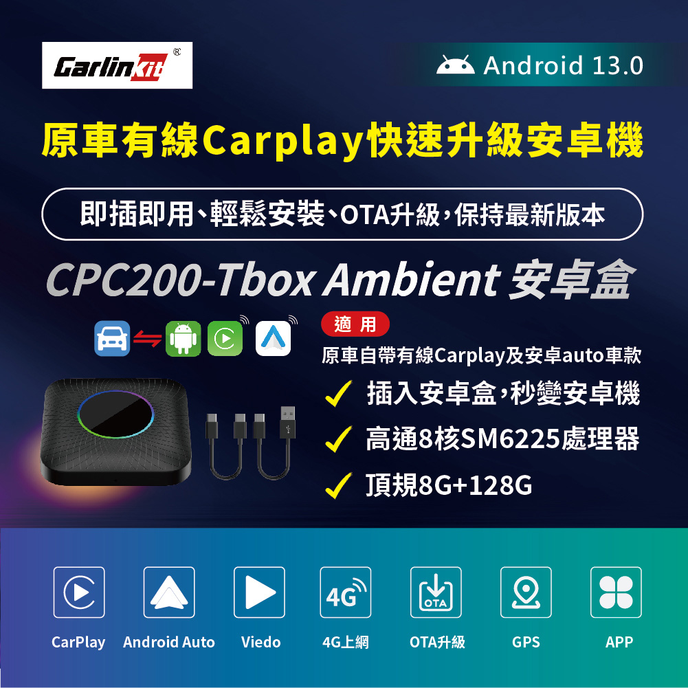 即插即用/Tbox Ambient高通八核心安卓盒(有線CarPlay秒變安卓機)