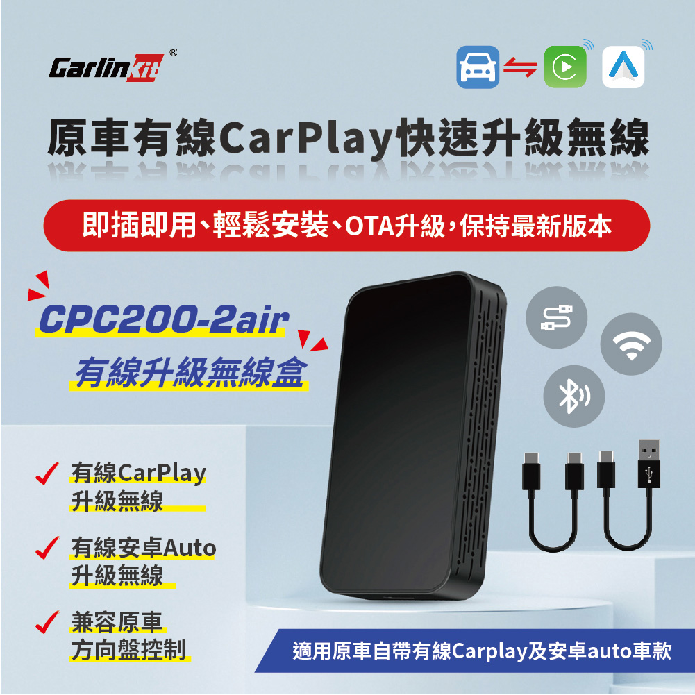即插即用/2air有線CarPlay快速升級無線盒